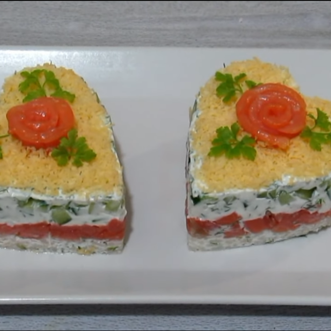 Всем привет! Предлагаю вашему вниманию праздничный слоеный салат с красной рыбой. Салат получается нежный и очень-очень вкусный. ПОНАДОБИТЬСЯ: ПРИГОТОВЛЕНИЕ: СЛОИ: 1 СЛОЙ: выкладываем рис, распределяем равномерно ровным слоем, так как я добавила в рис творожный сыр. то это слой уже я не смазываю. 2 СЛОЙ: слой рыбы. 3 СЛОЙ: выкладываем слой сырной массы. 4 СЛОЙ: огурцы. 5 СЛОЙ: сырная масса. 6 СЛОЙ: сверху посыпаем твердым сыром. Такой красивый, нежный салат получается. Сытный и очень вкусный. Этот салат подойдет для любого праздничного стола. Готовьте с удовольствием) Подписывайтесь на мой канал, ставьте лайк. Приятного аппетита!