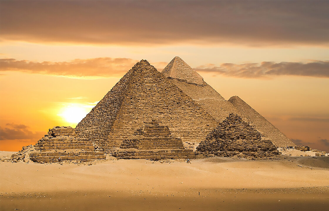 Пирамида Хеопса (известная также как Великая пирамида или пирамида Хуфу), расположенная в Египте на плато Гиза, была построена во времена Древнего царства (ок. 2560 г. до н.э.) и является самой большой в мире. Она была построена из огромных каменных блоков весом от 2,5 до 35 тонн, всего их было использовано более 2 миллионов, а высота пирамиды была около 146 метров.