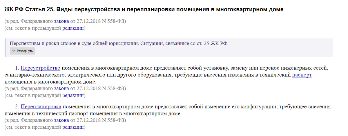 Всем привет! - Проведите мне техинвентаризацию! - Сколько стоит получение паспорта БТИ в «черных линиях»? - А изменения в архивы БТИ Вы внесёте? Эти и многие другие вопросы поступают в мой адрес как в виде простых обращений граждан, так и посредством запросов коммерческих предложений от различных организаций. Сегодня мы узнаем, когда необходимо будет обратиться в БТИ, а когда – нет. Узаконение работ в БТИ Говоря о необходимости обращения в БТИ, следует понять один важный момент даже при условии того, что в БТИ нужно обратиться и получить от них технический паспорт в «черных линиях» - это не означает, что работы будут узаконены. Паспорт БТИ, в данном случае, выступает лишь как один из этапов узаконения. И это справедливо для 100% случаев. Федеральное законодательство содержит лишь одно упоминание о БТИ: в Жилищном кодексе. Открываем статью 25 (кликабельная ссылка) и смотрим определение словам «переустройство» и «перепланировка»: Что из этого следует? Из этого следует, что получить акт п