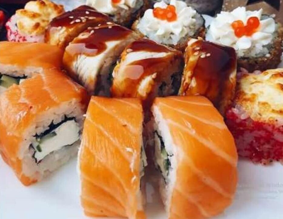 Это очень большой и не реально вкусный ролл. Рыба внутри слегка пахнет дымком, а домашний сливочный сыр получился один в один как покупной. И самое крутое это сладость, которую дают угорь и мякоть пельсина. По вкусу это 10 из 10!