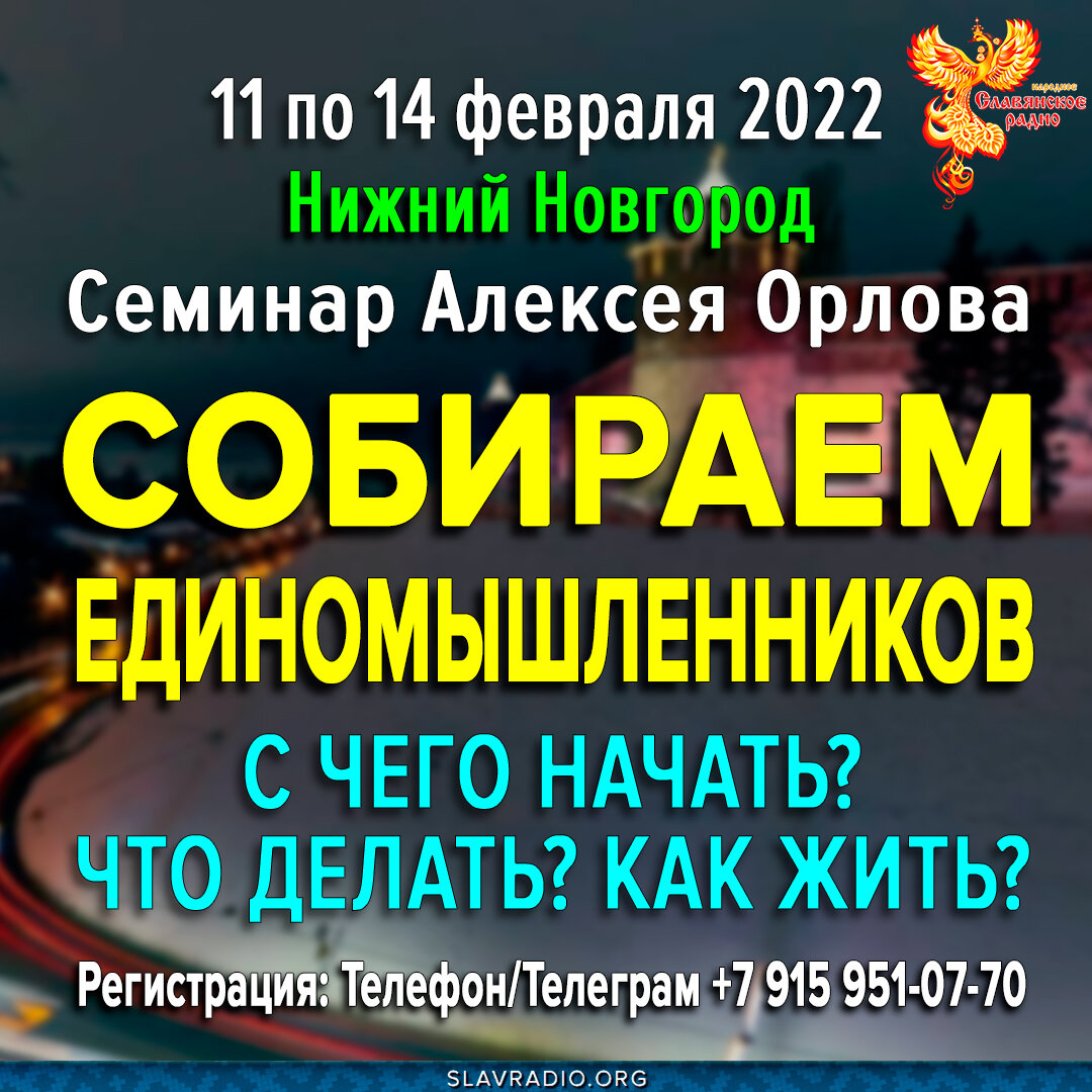 С 11 по 14 февраля 2022 года в Нижнем Новгороде, для здравомыслящих людей я проведу встречу-семинар «Собираем единомышленников. С чего начать? Что делать? Как жить?».