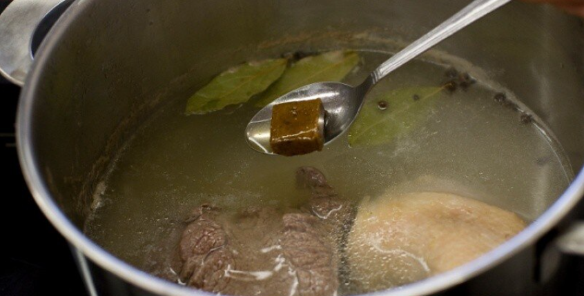 Шаг 1 Мясо вымыть, залить 1,5 л холодной воды, довести до кипения, после чего собрать образовавшуюся пену. Добавьте специи и кубики благородного бульона Knorr и медленно варите около 40 минут. Шаг 2 Овощи, морковь, сельдерей и петрушку нарезать толстыми кубиками и добавить в бульон. Лук опалить над газом до темно-золотистого цвета и также добавить в бульон. Шаг 3 Отвар варить еще 40 минут. Лук-порей и брюссельскую капусту нарезать кубиками и вместе со специями добавить к целому. Бульон варить еще около 20 минут. Подавайте с порцией овощей из кастрюли и мяса, а также нарезанные блинчики с пармезаном. Шаг 4 Смешайте все ингредиенты вместе в однородное, гладкое тесто. Если это слишком р