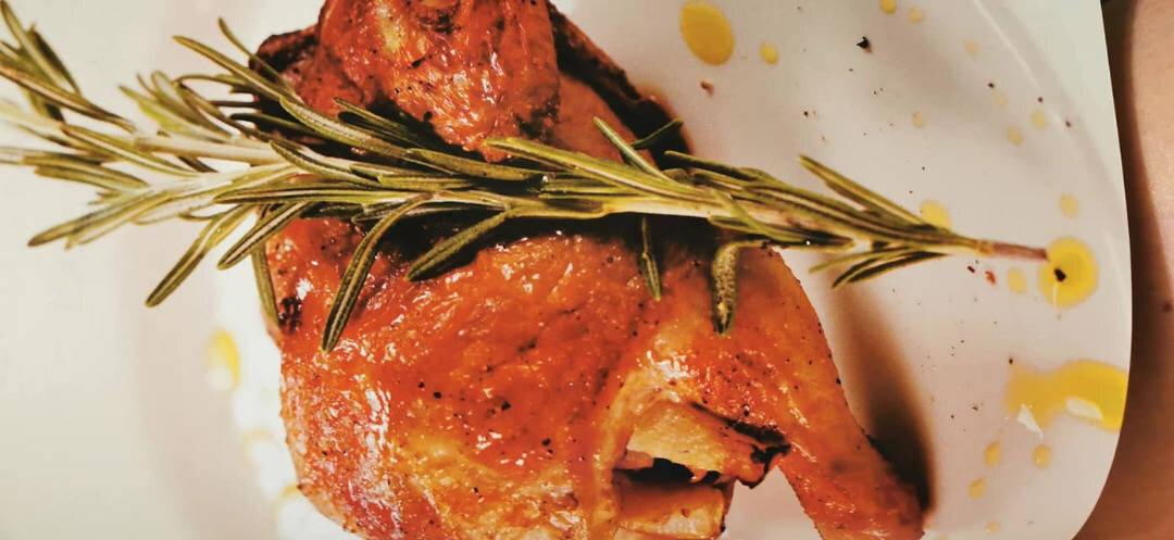 Субботнее, праздничное :) #второеблюдо #праздничныйстол #курица #меню Ингредиенты: Цыплята , Розмарин, Чеснок, Оливковое масло, Соль, перец, Для фарша:, Груша, Кедровые орешки, Мед, Сыр дор блю Способ приготовления: Приготовить фарш. Грушу очистить от кожуры и сердцевины, нарезать ломтиками. Кедровые орешки слегка обжарить на сухой сковороде и смешать с ломтиками груши с добавлением меда. Нарезать сыр дор блю небольшими кубиками и аккуратно перемешать со смесью груши и орехов. Цыплят обработать и зачистить от оставшихся перышек, хорошо промыть. Тушки цыплят натереть солью и перцем внутри и снаружи, наполнить подготовленным фаршем. Ножки скрестить у грудной клетки и скрепить при помощи шпагата или деревянных шпажек. Подготовленные тушки цыплят выложить на противень с розмарином и чесноком, сбрызнуть оливковым маслом и поставить запекаться в духовку до золотистой корочки при 180 °С на 45–50 минут, периодически поливая выделяющимся при запекании жиром. Цыплят достать из духовки и удалить