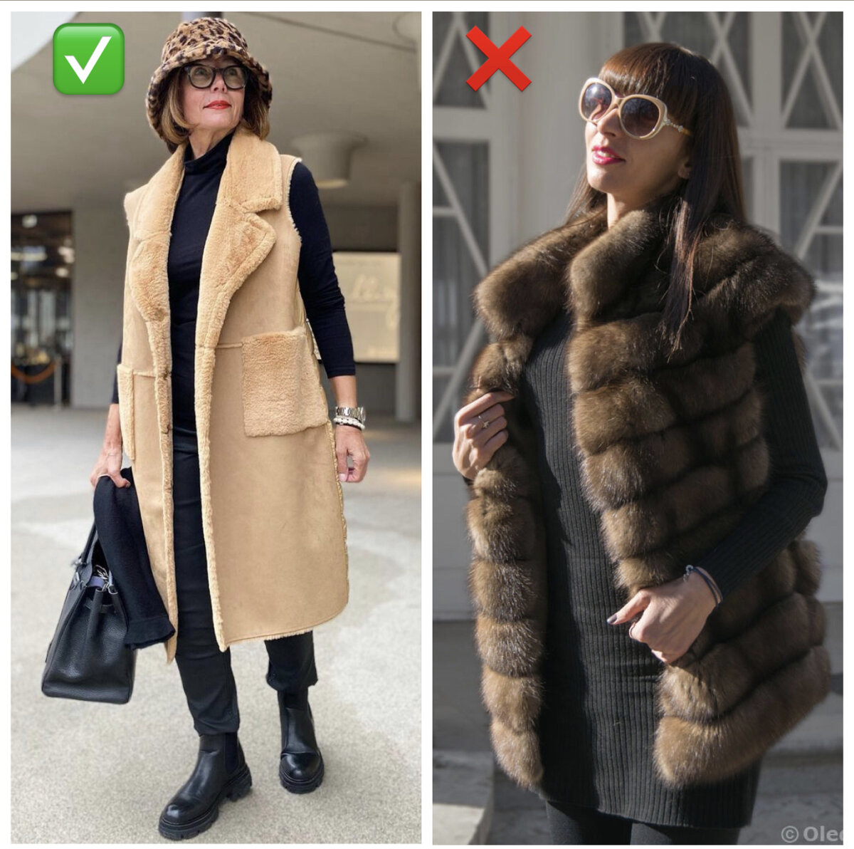 Привет, вы на канале LADY! Мода быстротечна и нам не обязательно всегда следовать ее веянию. Однако, есть такие вещи, которые способны испортить даже самый стильный наряд - это антитренды. От них периодически нужно очищать каждый гардероб, иначе вы рискуете выглядеть старомодно и безвкусно. Сегодня вы сможете проверить свой модный арсенал и узнаете, как исправить ошибки, если они есть. Надеюсь, статья будет для вас полезной и вы оцените ее лайком 👍🏻 Жилетка Жилетка очень удобная вещь в прохладную погоду - накинул и пошёл. Однако, все не так просто, как может показаться, к ее выбору нужно подходить с головой. Меховые жилетки стали жучащим антитрендом и вряд ли ещё когда то вернутся в моду. Они были в моде настолько долго, что попросту наскучили. Гораздо лучше будет выбрать жилетку не на подобии шубы, а по прототипу дублёнки, как на фото слева. Минималистичный дизайн с лаконичными вставками подойдут каждой и смотрятся куда свежее, чем первый вариант. Спортивный стиль Зимой всем