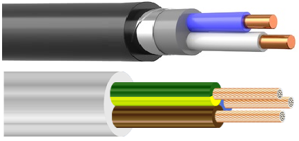 ВВГ – получил широкое распростанение для осуществления разводки в жилых и производственных помещениях. Номинальное напряжение 0,66/1 кВ. Состоит из медных токопроводников и двойной виниловой изоляции, которая отделяет жилы каждую по отдельности, а также служит внешней оболочкой. Количество жил от 1 до 5, при диапазоне сечений до 300 мм2. Очень удобен для монтажа розеточной линии или сетей освещения в квартирах и частных домах. Применяется для организации уличного освещения. Возможны исполнения негорючего кабеля с добавлением соответствующих примесей в состав изоляции, обозначается как ВВГнг.