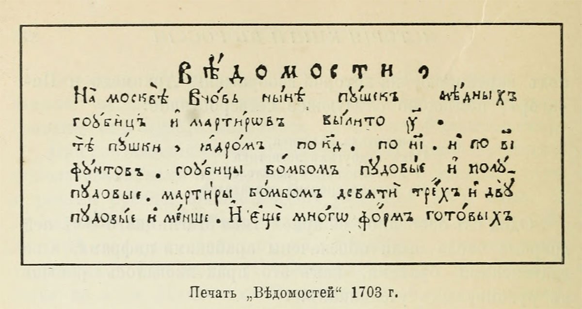 Этот добрый, выносливый, обладающий сильной волей, держащий свое слово, человек, хотя был очень требователен, напоминает гигантскую скалу с небольшой растительностью, о которую временами бьются бешеные, бегущие, как лань волны. «Любезнейший» орган Петра Великого. Первые номера русской газеты «Ведомости» начали издаваться с 1703 года при Петре I согласно его указу от декабря 1702 года. В газете в основном сообщалось о событиях, связанных с военной тематикой: гов