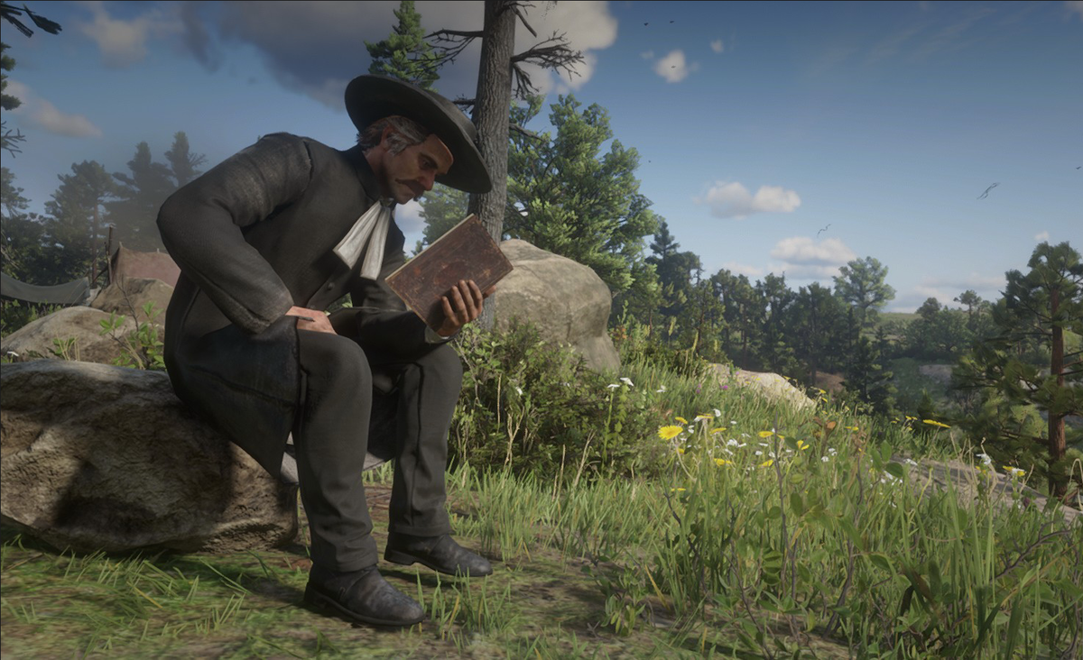 … Если Артур не будет спешить ни на какой квест, а спокойно прогуляется по лагерю на нагорье Подкова, то среди разбитых палаток он заметит лежащую на бочке Библию пастора Суонсона.