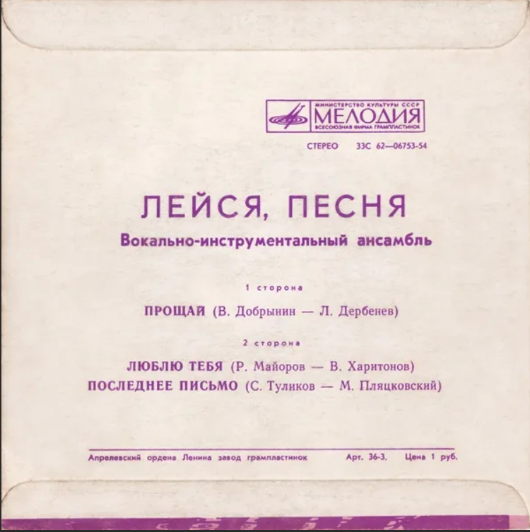 Пришли выходные- время отдать должное культуре Еще одна популярная песня Серафима Туликова: "Последнее письмо" на слова Михаила Пляцковского Слова: 1. Вадим Мулерман 2. ВИА "Лейся песня" 3. Влад Андрианов 4. Игорь Кучеренко 5. Владимир Михайлов P.S. Слушайте и исполняйте настоящие песни!!! Остальные песни Серафима Туликова: Песни других советских композиторов в моем блоге: Подписывайтесь на мой телеграмм-канал: Антология советской песни от Сеятеля