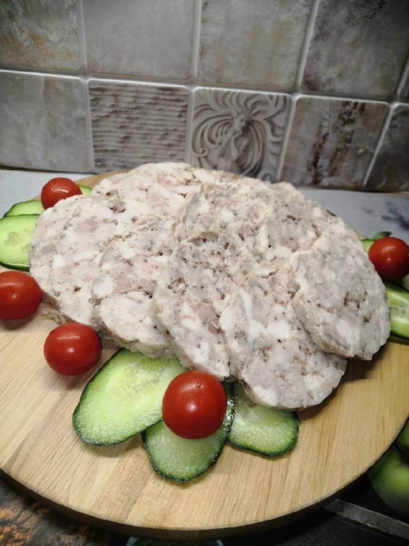 #меню Просто и очень вкусно. Всем приятного аппетита Ингредиенты: Мясо (свинина, курица) , Желатин , Соль и перец Способ приготовления: Подготовка ингредиентов. Желатин залить 1 ст.л воды. Мясо разделить на две части. Одну часть взбить блендером, а вторую нарезать мелким кубиком. Смешать мясо с желатином и специями, тщательно перемешать. Сформировать колбаску при помощи пищевой пленки. В не кипящую воду положить колбаску и варить до готовности, примерно 50 минут. Вот такая аппетитная и очень вкусная получается колбаса. Всем приятного аппетита.