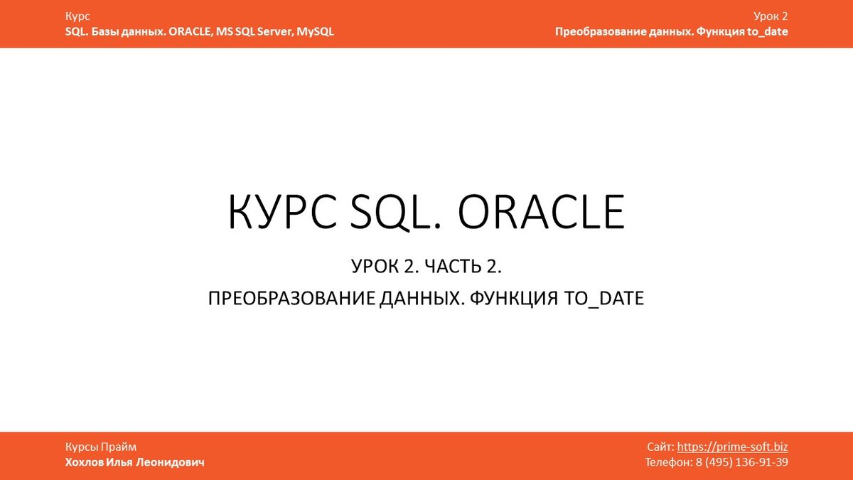 Курс SQL. Базы данных. ORACLE. Преобразование данных. Функция to_date