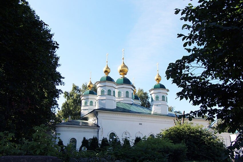 Еще издали видны золотистые купола Воскресенского собора, все остальное укрывает густая зелень.