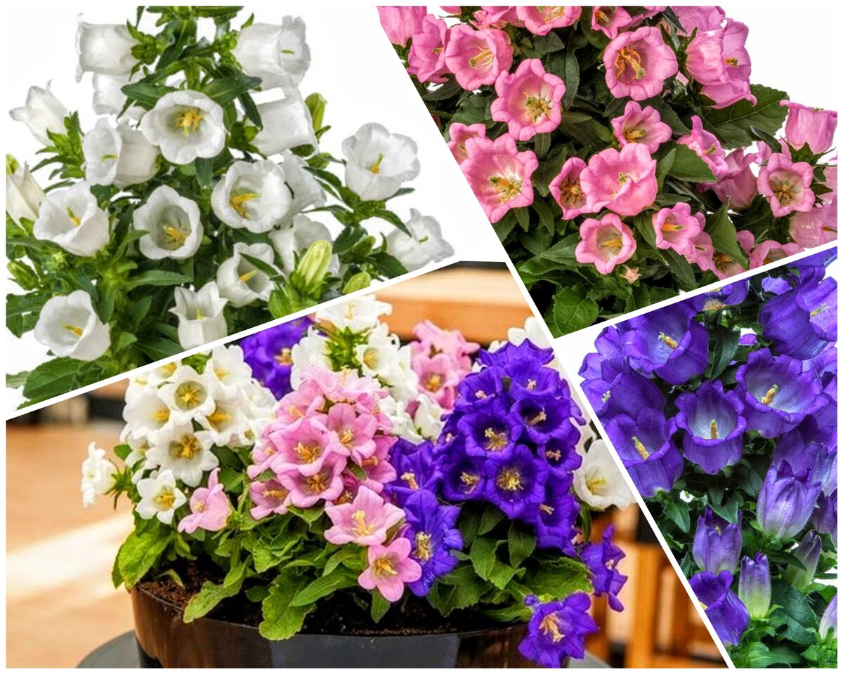 Если в моем саду растут ромашки, то обязательно должны быть и колокольчики. Куда ж одно без другого! У меня вполне удачный опыт 2019 года выращивания из семян некоторых многолетних колокольчиков - ширококолокольчики (платикодоны) растут уже третий год, выстреливая на клумбах после отцветших тюльпанов. Колокольчик средний "Чашка с блюдцем" - двухлетняя культура - хоть и очень мне понравился, но выживаемость кустиков на второй год настолько низкая (чудом выжил один), что я теперь совсем отказалась от их посева. К сожалению, и чуда самосева, о котором многие мне писали, тоже не произошло. Японские селекционеры (Sakata) вывели миниатюрный колокольчик средний (серия Эппил) - 25 см в высоту, с цветочками довольно крупными для такого крохи - 4,5 см. Внешне выглядят они прикольно, напоминают украшенную новогоднюю елочку. Мне они интересны тем, что цветут в год посева, однолетники. Семена колокольчиков серии Эппил лежат у меня второй год, и в этот раз я обязательно их посею. Их можно выращив