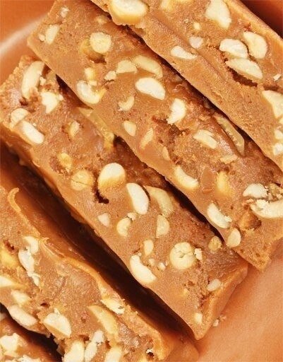 Щербет с арахисом Нам понадобится: 1. Арахис 1 стакан 2. Молоко 1 стакан 3. Сахар песок 3,5 стаканов 4. Масло сливочное 80 грамм Шаг 1 Для сытного десерта лучше брать молоко максимальной жирности. В посуду выливаем молоко и добавляем туда 3 стакана сахара (0,5 ст. оставить на потом). Постоянно помешивая, ставим молоко на маленький огонь и увариваем 30 минут. Шаг 2 Арахис также необходимо поджарить на сковороде до золотистого цвета, чтобы шелуха легко снималась. Шаг 3 Дошла очередь и до отложенной части сахара: высыпаем сахар на сухую сковороду, чтобы получилась карамель, а наш щербет смог приобрести коричневый цвет. Добавляем приготовленную карамель к молочно-сахарному сиропу. Шаг 4 Варим до готовности. В среднем, щербет будет готов через час варки. Добавляем сливочное масло. Шаг 5 Форма, в которую будет вылит домашний щербет, может быть простой или же фигурной. Дно формы застелить бумагой для выпекания и засыпать орехи. Далее заливаем будущий щербет и переносим в прохладное мест