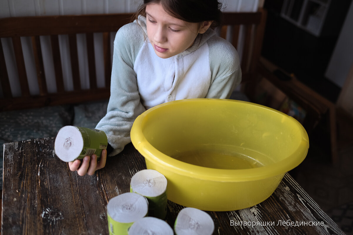 Это был удивительный опыт и для меня, но ребенок увидел где-то миску по такому рецепту и решила, что нужен светильник. Решили попробовать. Показываем как делали и что вышло. Материалы простые и доступные. Дольше всего мы ждали воздушные шарики с али, для светильника обычные нам показались маленькими. Нам понадобится самая дешевая туалетная бумага, лучше без втулок и тазик: Разматываем или разрываем бумагу на куски: Заливаем бумагу водой: И оставляем так на пару часов: Через пару часов берем блендер и клей ПВА: Добавляем к нашей бумаге еще немного воды и клея ПВА (мы добавили половинку банки из строительного магазина): Надуваем воздушный шарик. Мне хочется, чтобы шарик послужил нам еще, поэтому аккуратно перевязали его резинкой, чтобы потом можно было сдуть. Начинаем покрывать получившейся массой наш воздушный шарик: Не забываем оставить отверстие под подвес: Покрываем массой столько, сколько хочется. У нас было два варианта и один сделалаи больше, а второй поменьше. Один потолще, в