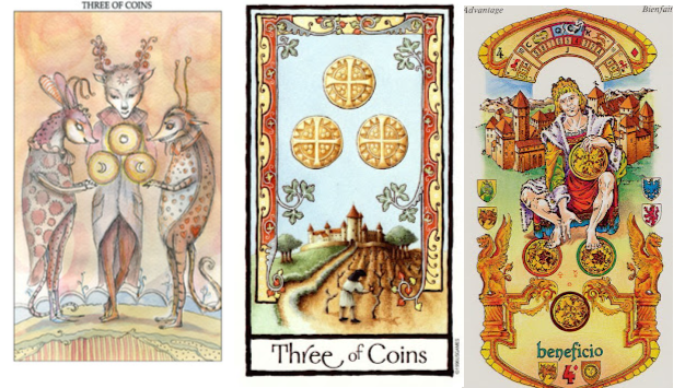 По Тройке пентаклей не будет такого, что человек сидит без работы, а тем более без денег. Это первая и самая основная мысль. Другой вопрос - что за работа, какие деньги. Какая работа - такие и деньги) Но мы однозначно можем сказать, что никакого кризиса нет, наоборот, наблюдается подъем.