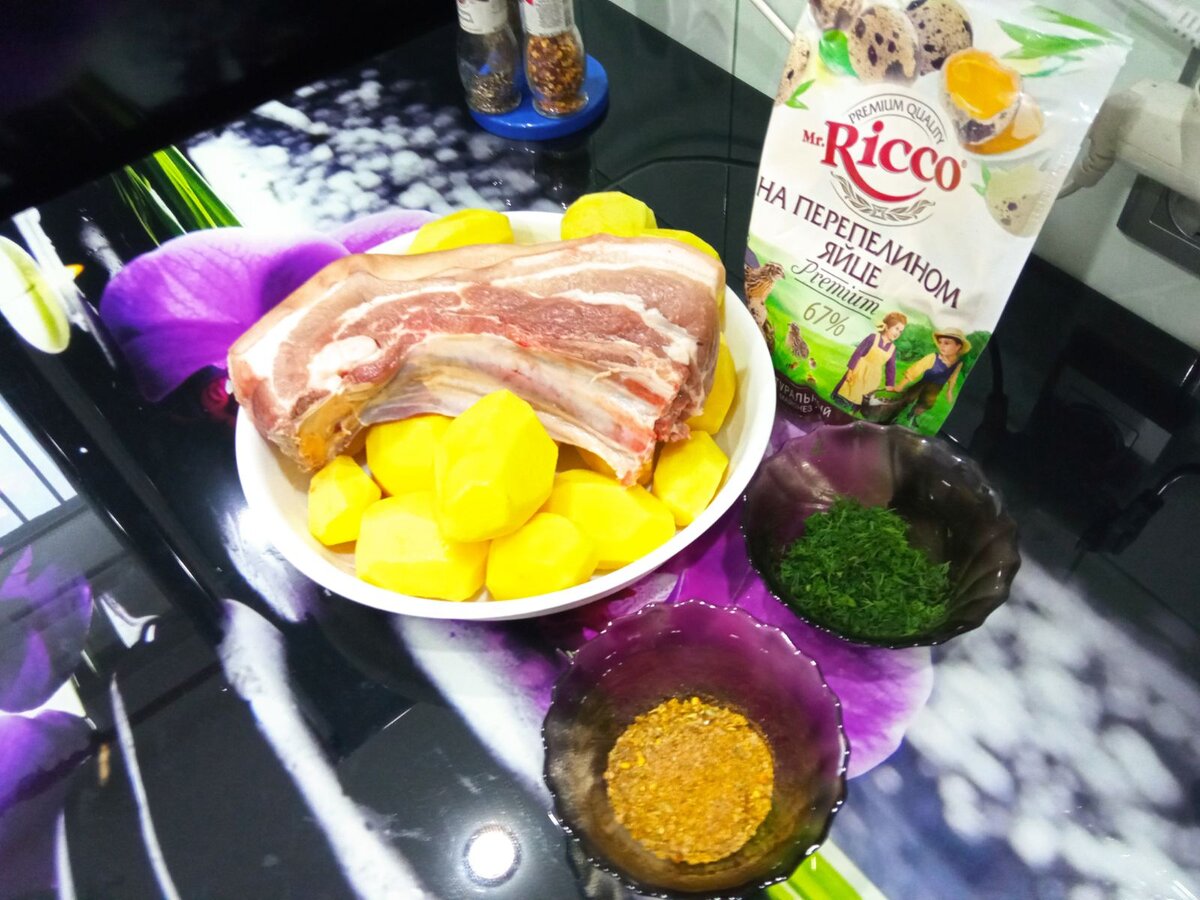Всем привет))) Сегодня у нас выходной, и я решила порадовать мужа вкуснятиной. Решила так же поделиться рецептом с вами. Блюдо очень легкое в приготовлении, но оно очень вкусное и сытное. Для приготовления нам понадобится: Для начала промываем прослойку и снимаем с нее кожу. Нарезаем ее кусочками, и отделяем от кости. Откладываем ее. Подготавливаем картофель. Заранее почищенный картофель нарезаем кругляшками. Выкладываем картофель на протвень. Смазываем картошку майонезом и выкладываем нашу прослойку. Солим и посыпаем приправой. Далее выкладываем прослойку на картошку, слоями. Смазываем майонезом. Посыпаем приправой. Потом выкладываем еще один слой картофеля, и на него выкладываем помидор. Смазываем майонезом. После того как смазали помидор майонезом, накрываем наше блюдо фольгой и ставим в духовку. При приготовлении нужно ориентироваться на свою духовку. Наша вкуснота запекалась примерно час при температуре 180 градусов. За минут 20 до готовности нужно будет убрать фольгу, и дать карт
