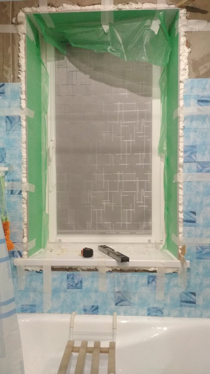 Сегодня расскажу как обрамить оконный проем, без привлечения специалиста. Все что нам нужно продаётся в больших строительных магазинах.Откосы покупаем по ширине и высоты проёма, лучше всего откос из сэндвич панели толщиной 1 см. а подоконник по ширине проёма и плюс 10 см на выпуски каждую сторону 5 см максимум. Если больше брать не красиво. Первое - устанавливаем подоконник . Берём размер проёма по ширине минус 1 см, потом прибавляем каждую сторону ушко по 4÷5 см, вырезаем лобзиком( полотно мелкими зубчиками). Подготавливаем оконный проём, лишнюю пену срезаем, углубляем, по краю оконной рамы, до нужной глубины и устанавливаем по уровню подоконник , снизу подпираем брусками или кусками фанеры чтобы не оставалось зазор между рамой и подоконником. Переднюю часть фиксируем малярным скотчем и пропенивание в глубине потом по наруже. Подоконник готов! Второе - устанавливаем верхней панель. Пилим по ширине проёма минус 1 см , вставляем также за раму, в глубину от 0,5 до 1 см также фиксируем