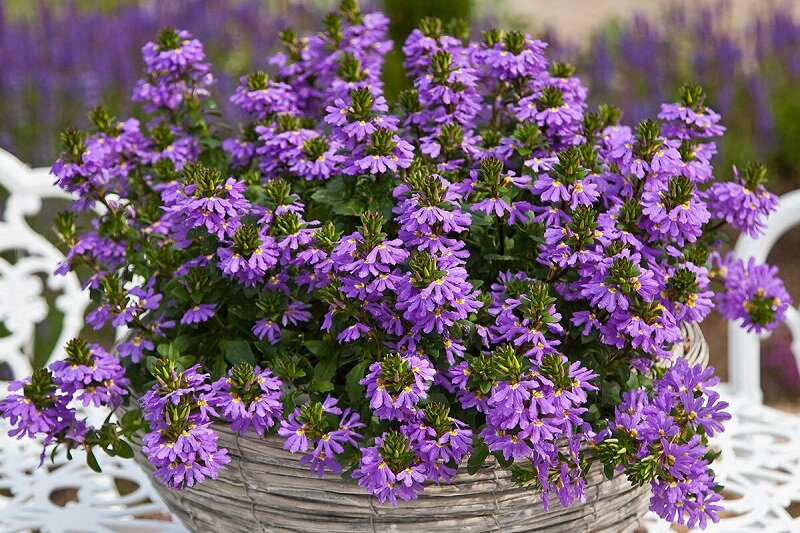 Невозможно представить сад без ярких привлекательных цветов. Красочный сад, это отличное место для отдыха. Имеются низкорослые растения, которые цветущим ковром устилают сад и неприглядные места. Сцевола, необычайное завораживающее растение. Неприхотливое растение прекрасно размножается семенами, черенками причём верхушечными, так и стеблевыми. Соцветия этого почвопокровника не похожи не на одно растение. Цветы настолько декоративны вполне могут составлять конкуренцию петуниям. Сами цветочки мелкие. Могут быть лиловыми, голубыми, фиолетовыми, сиреневыми. Цветут непрерывно в течении сезона, не боятся сквозняков и ветра. Нолана, чудесное растение, любит открытые солнечные места, неприхотлива к почвах, растёт и на бедных почвах. Нежные голубые цветочки распускаются один за одним до самой осени. Размножается семенами, для раннего цветения лучше выращивать рассадой. Вербена, в зависимости от сорта растение может достигать в высоту до 18 см и выше. Растение представляет кустик хорошо ветв