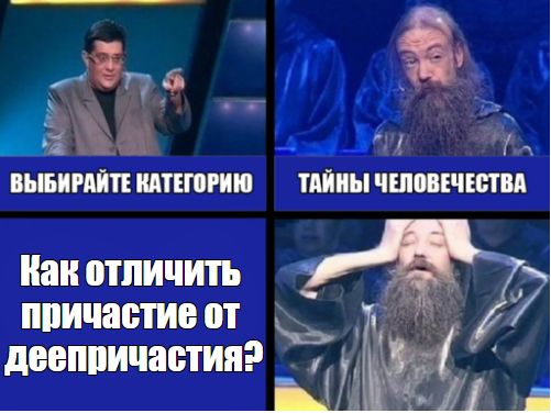 Больная тема многих школьников, согласитесь? Их постоянно путают то друг с другом, то с глаголами. Этому есть объяснение: у причастия и деепричастия один общий родственник – тот самый глагол. И как тогда различать их? Спокойнее, сейчас ты прочитаешь эту статью и точно всё поймёшь. Всю информацию я буду преподносить в сравнении и сопоставлении. А чтобы тебе не было скучно, обрати внимание на мемы, которые помогут понять материал :) Обязательно дочитай до конца: там есть примеры! Ну что ж, поехали. 1. ЗНАЧЕНИЕ. Причастие обозначает проявляющийся во времени признак предмета по действию. Деепричастие обозначает добавочное действие при основном действии, выраженном глаголом-сказуемым. 2. ВОПРОСЫ. Причастие отвечает на вопросы какой? что делающий? что делавший? что сделавший? что делаемый? что сделанный? и т.д. Деепричастие отвечает на вопросы что делая? что сделав? 3. ВЗАИМООТНОШЕНИЯ С ДРУГИМИ ЧАСТЯМИ РЕЧИ. Причастие имеет признаки глагола и прилагательного. Деепричастие имеет признаки гла