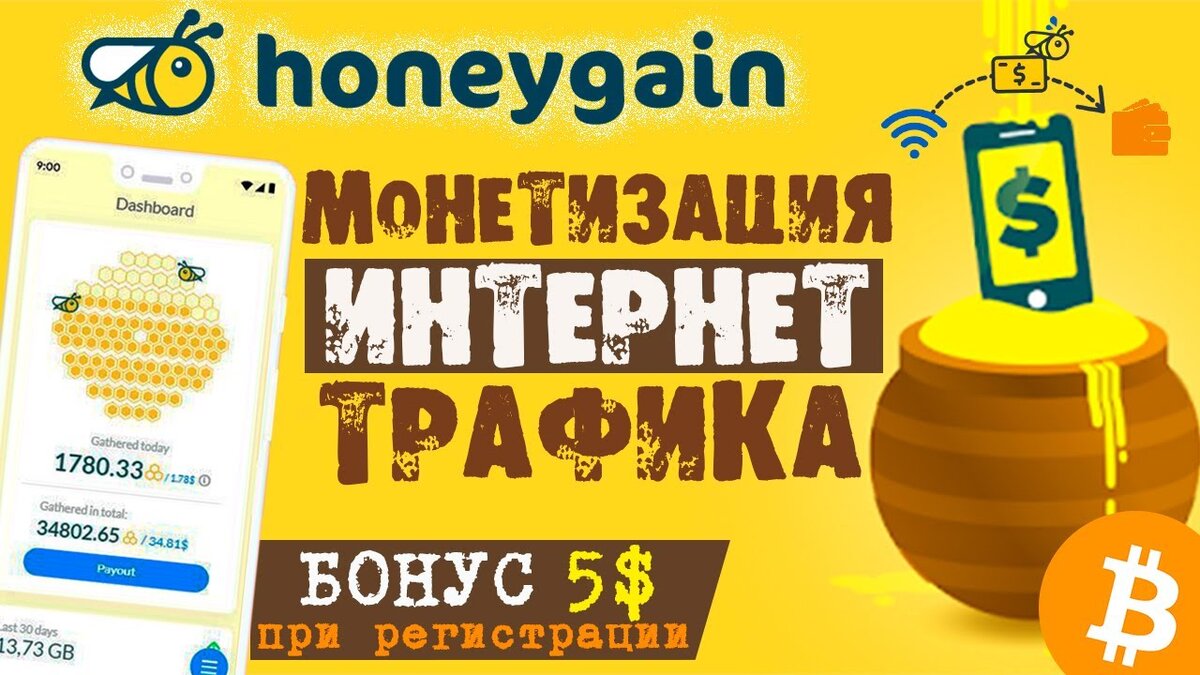 С Honeygain начните зарабатывать деньги в Интернете всего за несколько минут. Просто установите приложение на свое устройство, зарегистрируйте бесплатную учетную запись, откиньтесь на спинку кресла и наблюдайте, как увеличивается ваш баланс. Ваш интернет-трафик используется только доверенными партнерами, а само приложение не получает доступа к хранилищу вашего устройства. С Honeygain зарабатывайте, не беспокоясь. Помогите другим интернет-пользователям, таким же, как вы, а также уважаемым компаниям, ваш общий трафик позволяет выполнять важные онлайн-операции и потоковую передачу геоблокированного контента. Ссылка напродукт: