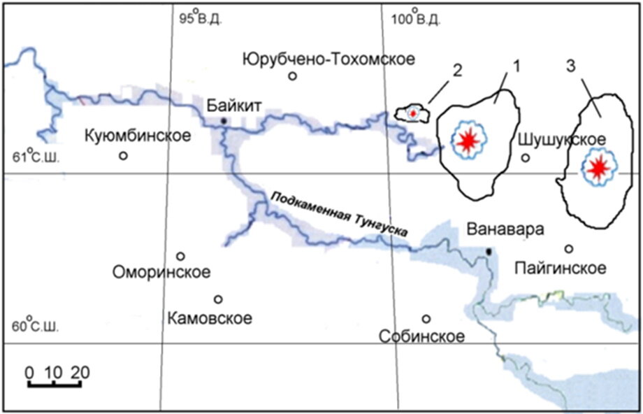 Важным доказательством газовой природы Тунгусского события является обнаружение в последние годы ряда газовых и нефтяных месторождений в этом регионе рис. 14.