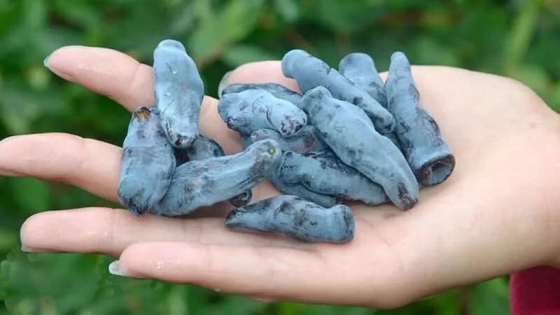 Здравствуйте, друзья. Наверное, многие из вас выращивают жимолость съедобную или камчатскую. Это самая ранняя ягода – поспевает раньше клубники. Есть сорта жимолости действительно замечательные во всех отношениях. Например, Бакчарский великан – самый крупноплодный сорт. Это средний по периоду созревания сорт, но плодоношение его сильно растянуто. Ягоды можно собирать в течение месяца. Высота куста может быть до 2 м. Крона круглая с немного острой верхушкой. Ветки ровные и толстые, в длину достигают 0,5 м. Этот сорт оправдывает свое название и является рекордсменом по величине и весу ягоды, масса одной – около 1,8-2,5 г, длина 5 см. Ягоды в форме цилиндра с восковым слоем. Кожица голубого оттенка. Мякоть сочная, семена не чувствуются. Вкус пикантный с изюминкой – кислинкой. Дегустационная оценка Бакчарского Великана 4,8 баллов из 5,0. Такой показатель заслуживает уважения и гордости за сорт отечественной селекции. Урожайность Бакчарского великана средняя (2-3 кг), но бывает в хороший