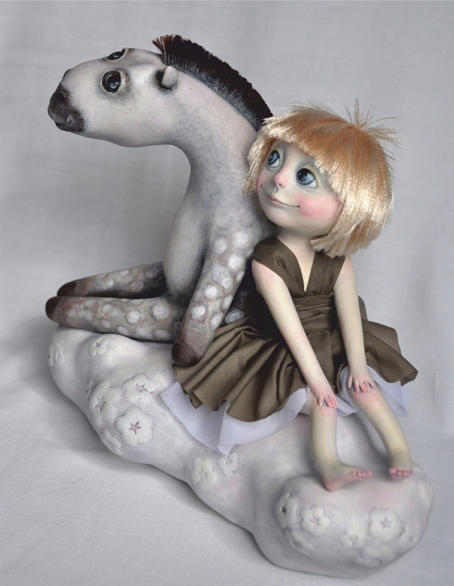 Откуда берутся образы – хороший вопрос. Обычно, когда его задают, я так и слышу в вопросе: «Ну это же ты из мультика какого-то вот этот персонаж взяла, да? Я, кажется, что-то такое припоминаю… Или это иллюстрация была такая, где-то в сети мелькала...?» Причем, многие это спрашивают абсолютно серьезно. Как-то мне доказывали, что видели «точно такую же лошадку, как в «Большом секрете» в сети. Выяснилось, что именно ее и видели… Не знаю, разочарую ли ответом или наоборот, но все образы и идеи приходят откуда-то из глубин моего подсознания, наверное. Да, конечно, я очень люблю хорошее художественное фото с глубокой смысловой нагрузкой, хотя, авторов, к сожалению, в массе не помню, люблю хорошее кино, музыку и поэзию. Но мои куклы – образы сугубо самостоятельные. Если зрителю показать, к примеру, те фото, которые меня «держали» в процессе создания, он просто пожмет плечами: общее там будет только настроение. Куклы рождаются в голове неожиданно, и чаще всего в процессе работы. Это доставляет определенные неудобства – еще текущая работа требует внимания, увлеченности и идей, а уже новая где-то там настойчиво «дергает за рукав». Процесс «вызревания» же куклы у меня обычно долгий. Тут во многом сказывается нехватка времени – основная работа, ребенок, домашние заботы, которых никто не отменял. Очень мало времени остается на хобби. К большому сожалению.