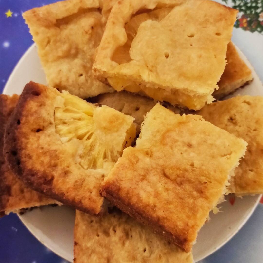 Я очень люблю кокосовую стружку и долго искала рецепт вкусного, но в то же время легкого пирога с ней. Попробуйте приготовить такой пирог. #рекомендую #кчаю #выпечка #пироги Ингредиенты: 🥚яйца, 🍚 сахара, 🥛молока, 💛 растительного масла, 🥥кокосовой стружки (более жирной), 💛 муки, 🧡разрыхлителя, соли, Для начинки:, 🍍 консервированных ананасов (колечками) Способ приготовления: Все ингредиенты должны быть комнатной температуры. В миску разбиваем яйца, добавляем щепотку соли, сахар. Взбиваем миксером около 5 минут. Далее добавляем молоко, растительное масло, кокосовую стружку. Еще раз хорошо взбиваем. Соединяем муку и разрыхлитель, просеиваем в массу и взбиваем. Выливаем бОльшую часть теста в форму, смазанную растительным маслом, выкладываем ананасы. Заливаем оставшимся тестом. Выпекаем в разогретой до 170 градусов духовке примерно 40-45 минут. Перед подачей можно посыпать сахарной пудрой.