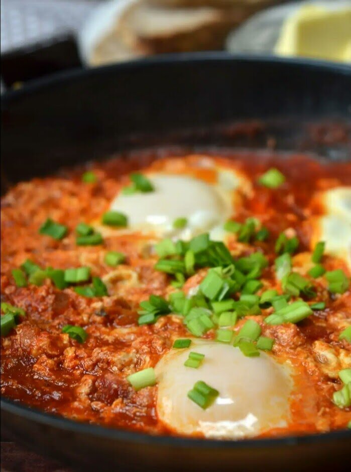 Шакшука - " влажная", с морем соуса и островками яиц :) Желтки - обязательно жидкие.