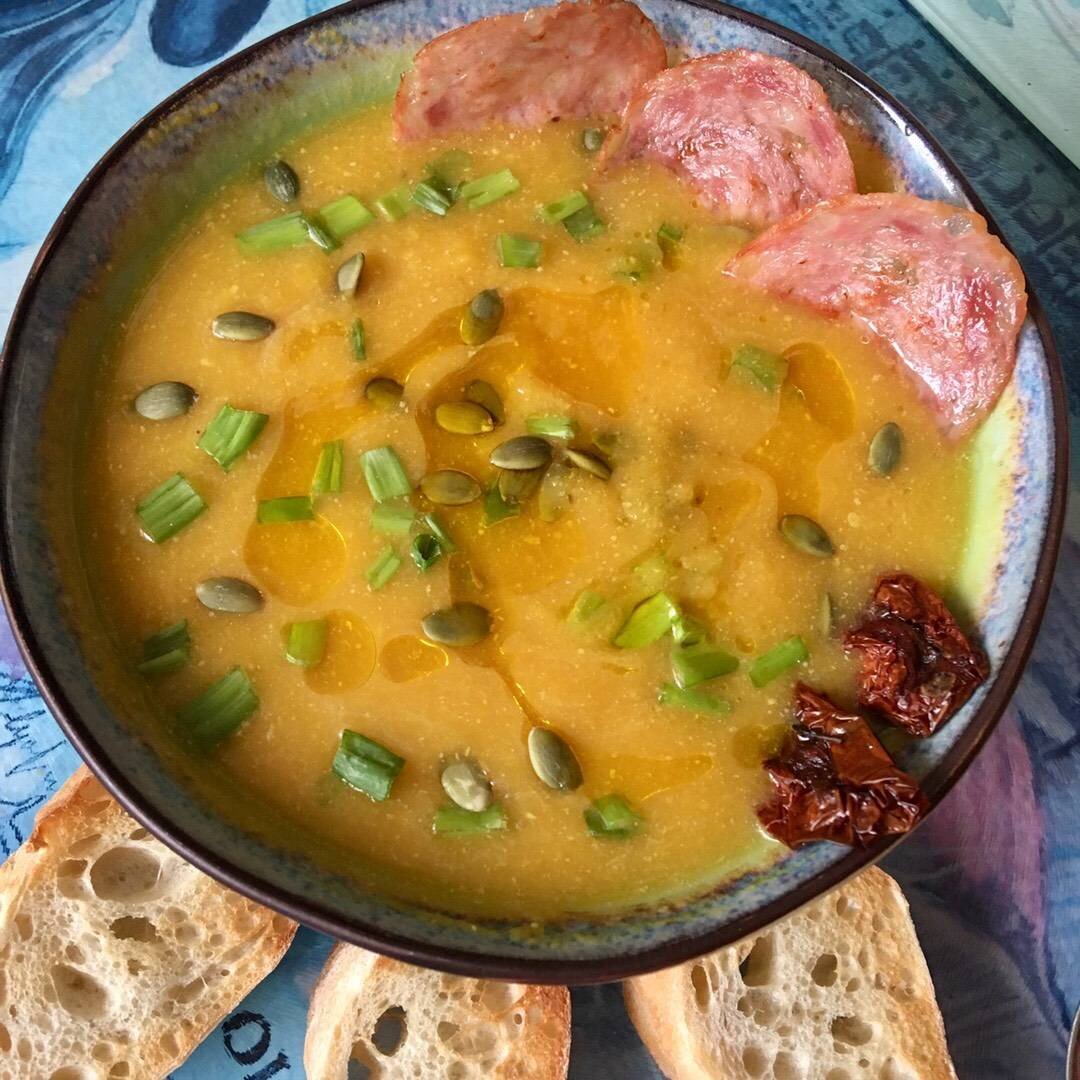 Тыквенный суп-пюре с копченостями на курином бульоне ПП