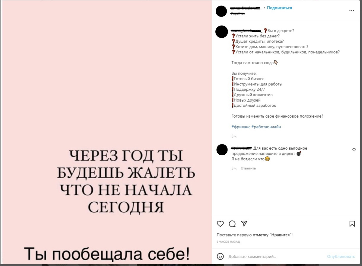 ЧТО ТАКОЕ ФРИЛАНС НА САМОМ ДЕЛЕ? Я работаю и активно развиваюсь в сфере фриланса уже 2 года. За это время я научилась многому, но так же многому мне предстоит научиться. Я решила вести свой блог, чтобы рассказать моим читателям о такой новой и востребованной профессии как "Фрилансер". В 14 лет я увидела рекламу в инстаграме о новой профессии(как и многие). Это очень меня завлекло, так как все хотят быть независимы от родителей и иметь больше денег на карманные расходы. Я перешла по ссылке и попала на профиль девушки, которая рассказывала о своих доходах и о "самом полезном" курсе, который она продавала за 990 рублей. Так как у меня не было таких денег, я сразу же отбросила идею покупать этот курс. Спустя пол года изучения всех этих техник и тактик я поняла, что вся суть покупки курса в дальнейшей ее перепродаже. Это означало лишь то, что я обманываю людей и высасываю из них последние деньги, которые они отдают в надежде на покупку этого курса.