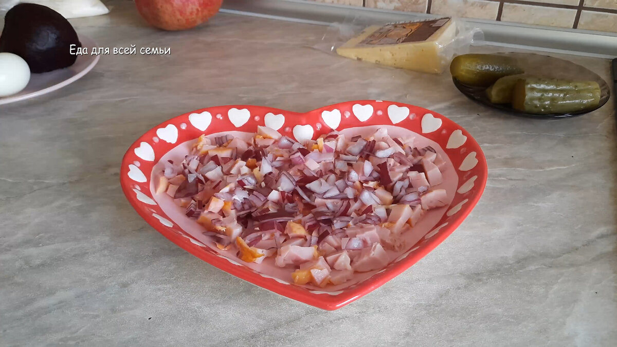 Салат "Признание" - нежный, в меру пикантный и очень вкусный. Салат готовится из самых доступных продуктов и обязательно украсит ваш праздничный стол. С помощью этого красивого салата можно признаться в любви своим близким...