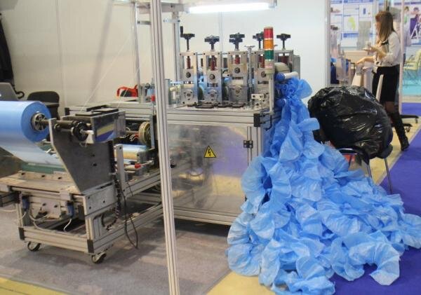 Автоматизированная линия изготовления бахил. Работа с ней состоит лишь в настройке оборудования и его периодическом обслуживании.