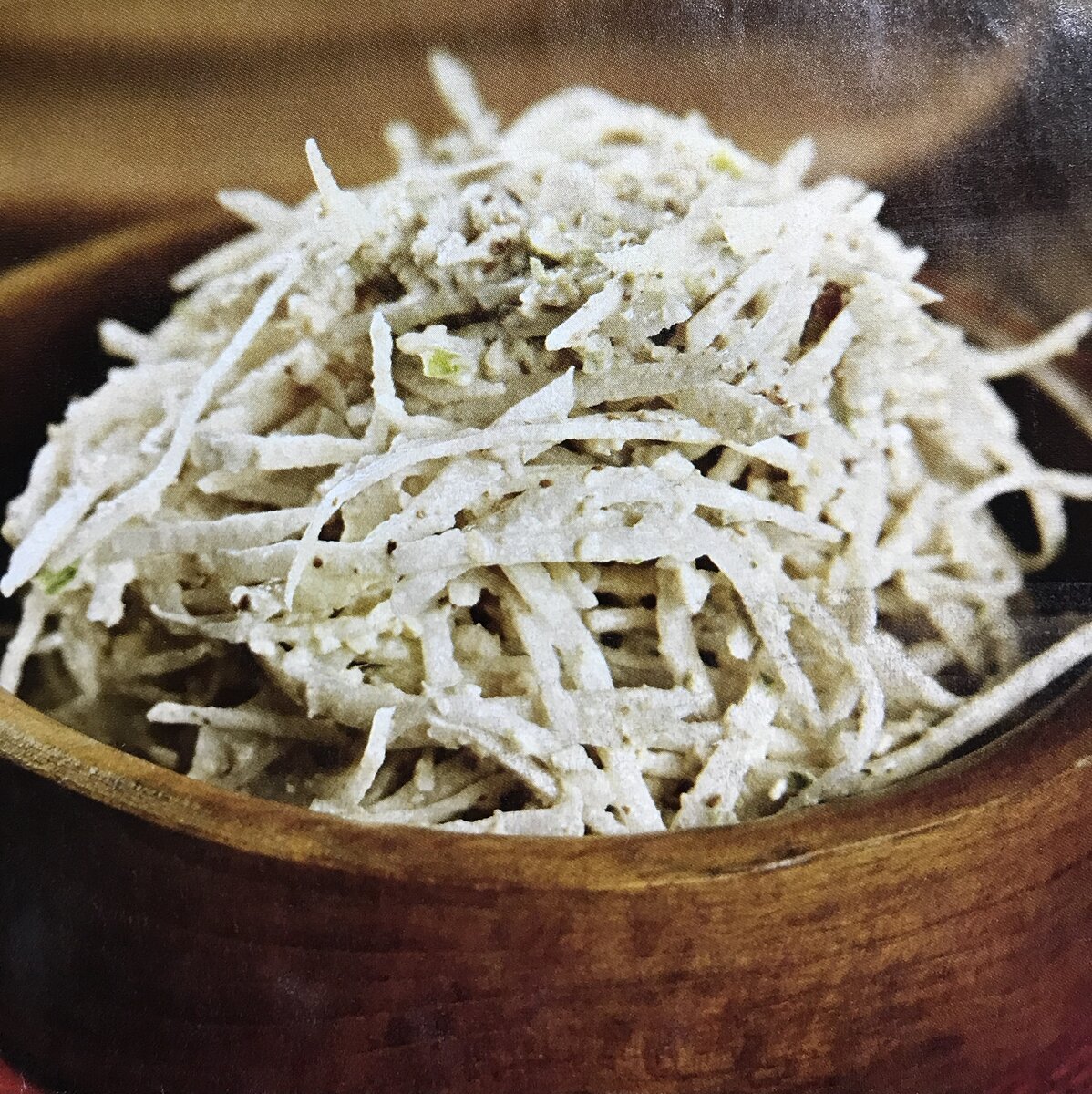 У нас сейчас в овощных лавках продается сочная белая редька. Люблю ее просто нарезанную ломтиками с лимоном и оливковым маслом. Недавно попробовала сделать салатную заправку из грецких орехов и йогурта. Оказалось, что она идеально подходит к редьке. Для салата нам понадобятся две средние редьки, горсть очищенных грецких орехов, один стебель сельдерея, четыре столовые ложки гатыка или несладкого йогурта, соль и перец по вкусу. Редьку очистим и нарежем очень тонкой соломкой. Переложим в салатницу. Орехи слегка обжарим на сухой сковороде и дадим остыть. Сельдерей промоем и нарежем на кусочки. Положим их в блендер. Туда же добавим орехи. Измельчим все в однородную массу. Смешаем редьку, ореховую массу и йогурт. Заправим солью и перцем. Вкусный и полезный салат готов. Приятного аппетита!!! Если вам понравился рецепт, лайкайте, пишите комментарии и подписывайтесь на мой канал. #редька #белая редька #салат из редьки #ореховая заправка #салатная заправка из грецких орехов