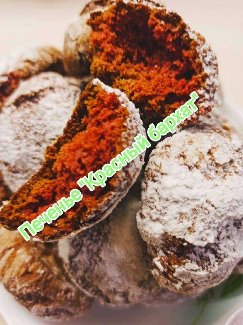 Оригинальное, хрустящее, в меру сладкое и яркое печенье с трещинками. Если красителя добавить больше, печенье будет ярче. Но это вовсе не обязательно. Тут главное не передержать его в печке!!! Сделано по мотивам автора Кукпад-@taiska__v из Москвы. #игры Ингредиенты: муки в/с, сахарной пудры в тесто + 100 гр. на обвалку печенья, яйцо "СВ", сливочного масла, молока, какао, разрыхлителя, соли, краситель красный Способ приготовления: Муку просеять. Я делала пудру из сахара-песка. Можно взять готовую. Масло мягкое. Смешиваем все сухие ингредиенты в чашке. Яйцо и молоко слегка взбить. Добавить краситель несколько капель. Всё перемешать. Влить в сухую смесь. Добавить масло и замесить тесто. Оно будет слегка липнуть к рукам, но так и должно быть. Муки больше не надо! Положить в пакет и убрать на 2 часа в холодильник. Скатать шарики и обвалять их в сахарной пудре. Я делала по 20 гр. Они ОЧЕНь увеличиваются в объёме. Кладём на лист с бумагой и ставим выпекать при Т-180*С на 10-15 минут. Готовое