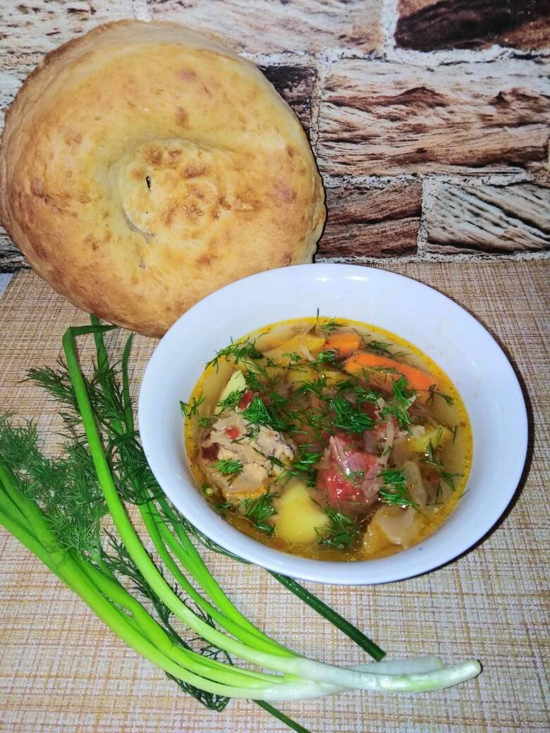 #игры Я очень люблю узбекскую кухню, и это блюдо мне очень понравилось. Карам - шурпа - это наваристый суп из капусты (квашеной или свежей) и других овощей. Хоть и называется "борщ", но в нём не используется свёкла, он получается"белый". И, как и все блюда узбекской кухни, очень вкусным, наваристым, ароматным. Сегодня мой вариант готовится в кастрюле. Ингредиенты: баранина мякоть и рёбра, квашеной капусты, средних картофелин, небольших луковицы, небольших моркови, крупного жёлтого перца, помидор, Зелень укропа, Специи для плова с зирой, Соль , сельдерея для бульона - по желанию Способ приготовления: В кастрюлю с холодной водой положить промытое мясо с костями. Довести до кипения, снять пену и убавить огонь на минимум. Варить на маленьком огне 1,5 - 2 часа. За час до готовности мяса добавить сельдерей (по желанию). После извлечь мясо и кости, бульон процедить. Пока варится мясо - моем, чистим и режем овощи. В шурпу овощи кладут крупно нарезанными, поэтому морковь порезать брусочками, по