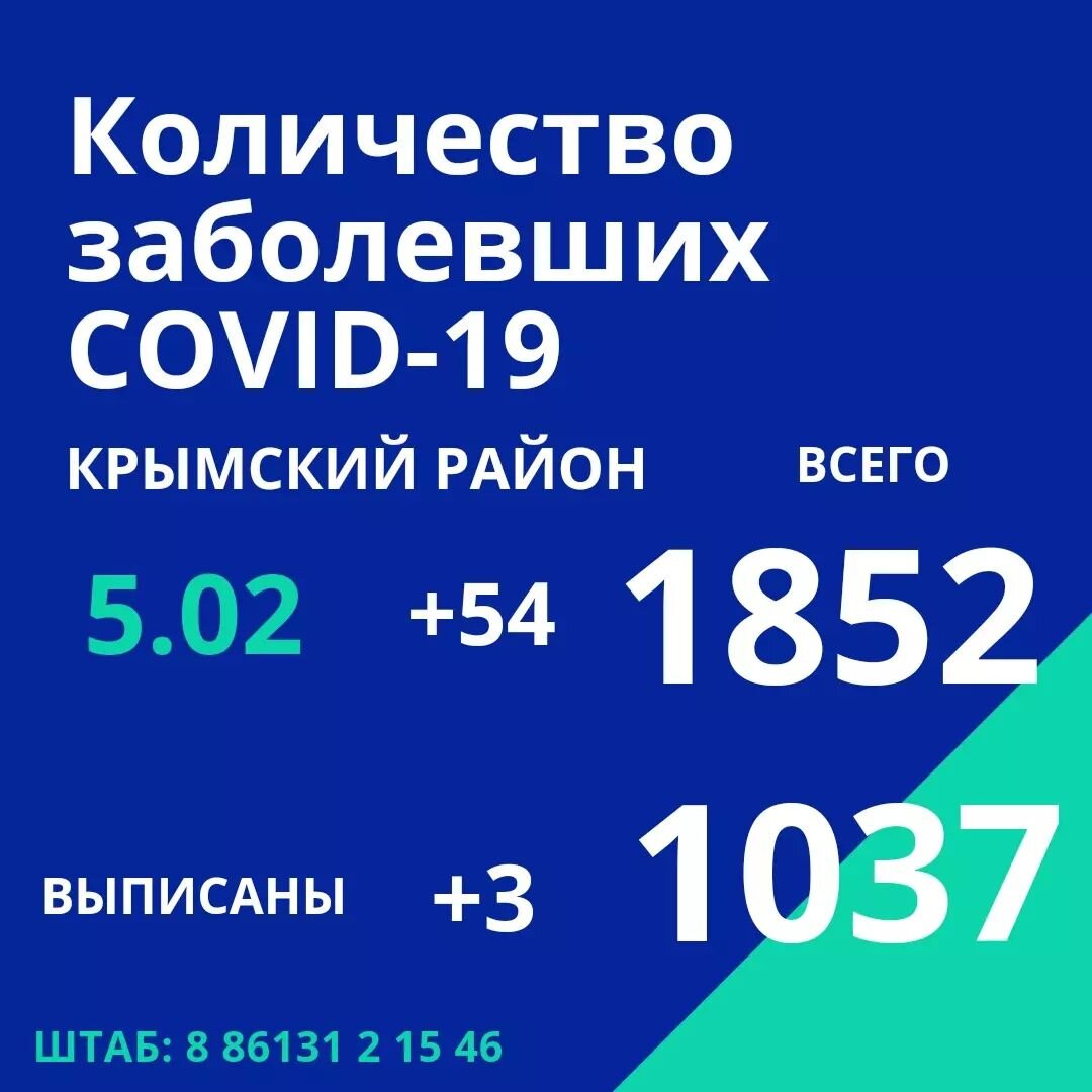 5 февраля по информации оперативного штаба Краснодарского края в Крымском районе 54 новых случаев заражения коронавирусной инфекцией.⠀