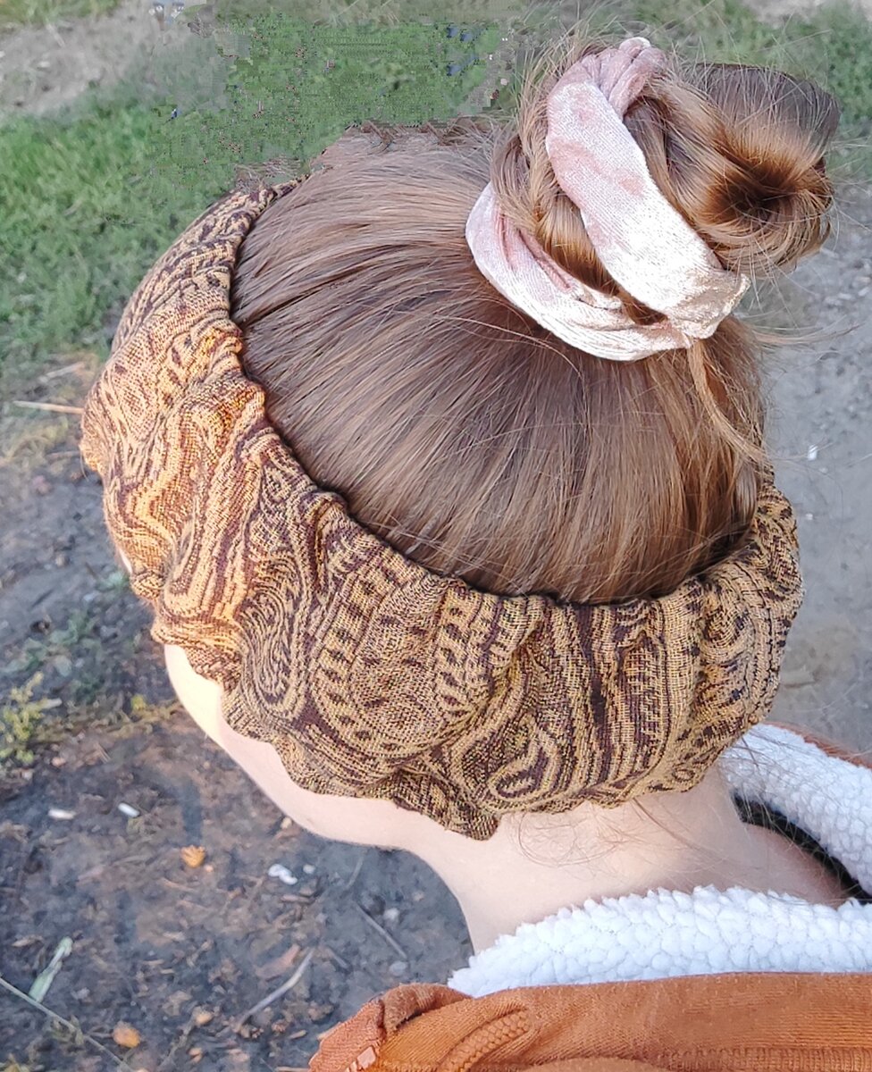 Снова о рукоделии или о каком-то действии, отдаленно его напоминающем. Предыстория. Я - мерзляк. И уши - одна из первых частей тела, которая готова отвалиться даже в восемнадцать градусов тепла, если на улице я нахожусь более получаса, и дует приличный ветер. И вот я на четвертом десятке догадалась. Может носить повязки на голову, прикрывающие уши в погоду, когда в утеплённом головном уборе ты уж слишком выделяешься на фоне остальных, даже детей? Повязки на голову никогда не носила, решила попробовать. Конечно же, что? Надо обязательно сделать самой. Всего лишь повязка на голову, не пиджак же, каждый раз думаю я, берясь за, как мне кажется, простое задание. В общем, кратко делюсь опытом. Первая моя повязка была из старого палантина. Отрезала полоску ткани в два раза больше ширины предполагаемой повязки, длиною чуть больше обхвата головы сантиметров на десять. Сложила полоску вдоль лицом к лицу, прошила, вывернула. Прошила строчки от каждого края, отступая примерно полтора сантиметра. В