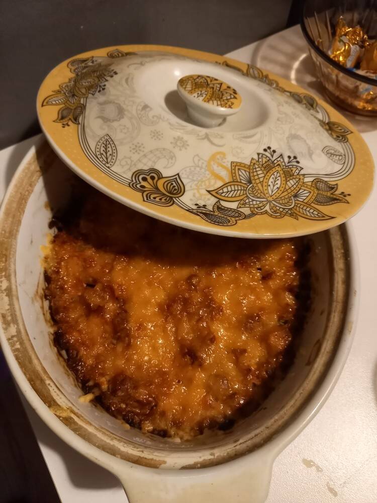 #игры Ингредиенты: карбоната, клубней картофеля, помидора, луковица, чеснока, майонеза, Соль,перец,специи для свинины, молотый перец чили, сыра Способ приготовления: Карбонад нарезать кубиком ~1,5 см. Помидоры и лук тоже нарезаем кубиком,но меньшим размером. Чеснок давим через пресс,все нарезанные ингредиенты смешиваем в миске,добавляем майонез, соль,перец,специи для свинины. Хорошо перемешиваем и расставляет мин на 30. Картофель чистим,нарезаем кубиком как карбонад. Выкладываем картофель в утятницу,солим,перчим. Сверху картофеля выкладываем замес из карбонада. Накрываем крышкой,ставим в духовку при 200° на 30-40 мин. У меня керамическая утятница,предварительно духовку не разогревала. Спустя отведённое время,посыпаем тёртым сыром и без крышки отправляем обратно в духовку на 15-20 минут. Приятного аппетита)))