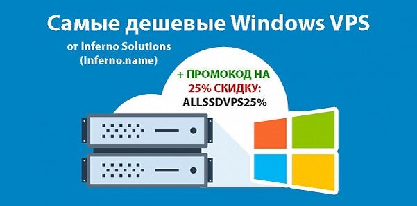 Где купить Windows VPS очень дешево? Сегодня я расскажу где дешево, надежно и быстро купить Windows VPS. Тарифы на менее и более мощные Windows. Inferno Solutions (Инферно Солюшен) — современный, быстрый, надёжный хостинг с высококачественной адекватной поддержкой. Один из лучших и недорогих хостингов! Работает с 2005 года. Продаёт недорогие Виндовс ВПС от 5$ и выделенные серверы с быстрой установкой. Сейчас на Inferno Solutions СКИДКИ! Самые дешевые Windows VPS от $5.00 USD в месяц + они дарят 25% скидку : по этому промокоду ALLSSDVPS25% , на первый платеж за период 1,3,6 мес. Для всех SSD VPS. Бесплатное резервное копирование на тарифах выше. Быстрая установка + доступны варианты апгрейда тарифов. ТАРИФЫ НА ДЕШЕВЫЕ WINDOWS VPS: Windows SSD VPS — тарифный план Lite (NL) (9 с быстрой установкой) ВАЖНО: Ввиду малого объема оперативной памяти область применения данного тарифа весьма ограничена. Если вы не уверены, что вам будет достаточно ресурсов, рекомендуем начать с тарифа Star