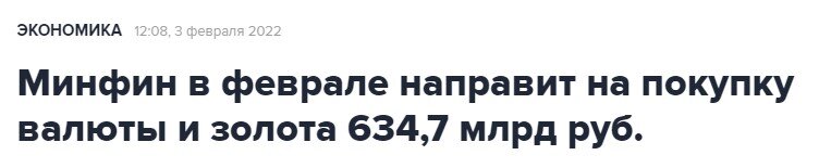 В конце января, когда рубль начал стремительно дешеветь под влиянием возросших так называемых "геополитических рисков", ЦБ принял решение о приостановке покупки валюты для ФНБ по поручению Минфина. Сделал он это уже в тот момент, когда рубль существенно ослаб, и краткосрочно выходил даже за отметку 80 рублей за доллар. "Лучше поздно, чем никогда" - писал тогда я, однако, было понятно, что формулировка "приостановил" означает, что это лишь временное явление. Но чтоб настолько временное... Уже с завтрашнего дня, 7 февраля покупки валюты вновь возобновятся. Как сообщили СМИ, с 7 февраля по 4 марта на покупку валюты и золота для ФНБ будет затрачено 634,7 млрд. рублей. В долларовом эквиваленте это около 8,35 млрд. долларов. За месяц. Эта сумма будет рекордной (!) за всю историю таких операций. В общем, "счастье" в виде приостановки действий по ослаблению рубля было недолгим и длилось всего-то 2 недели. После чего скупки валюты продолжатся даже еще большими, рекордными темпами. Угадайте, как