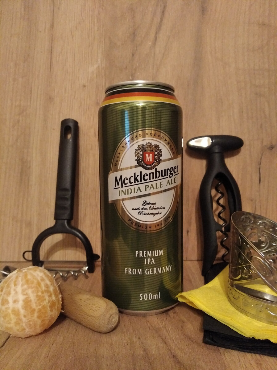 Давно у автора пиво не вызывало столько вопросов, сколько эта злосчастная IPA. Не поверите, но обзор вышел аж с третьей банки. Я всё пил и на протяжении недели никак не мог определиться со вкусовой гаммой. Оно то казалось брутальным наподобие Feldschlößchen IPA, то железистым, то никаким, то питким, то отвратным, то жутко цветочным. Сегодня(для читателя вчера) я достал третью порцию и понял: пора заканчивать с этим бредом. Итак, зелёная банка 0.5л приобретена в КБ за 70 рублей. Рядом на полке стояли ещё 2 мекленбургера: пилс и вайцен. Автор когда-то на заре канала делал на них первые неловкие обзоры. Кстати, очень удивлён что эта парочка всё ещё продаётся, ну уж очень посредственные варианты. Умеренно охладил, пора который раз наливать Цвет янтарный. Шапка пены среднего размера, оседает также со средней скоростью. Аромат слабый: чуть ёлки, чуть цитруса. Зато приятный. Пора пить! Пробуем... стоп, это точно IPA? Горечь в районе 40 IBU по ощущениям. По мерками пилса более чем достаточно,