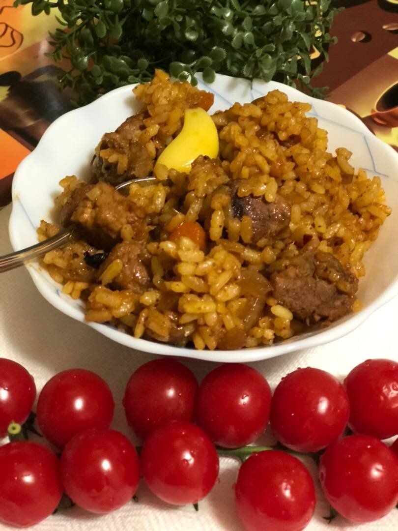 Плов со свининой на сковороде (с отдельным приготовлением риса и мяса)