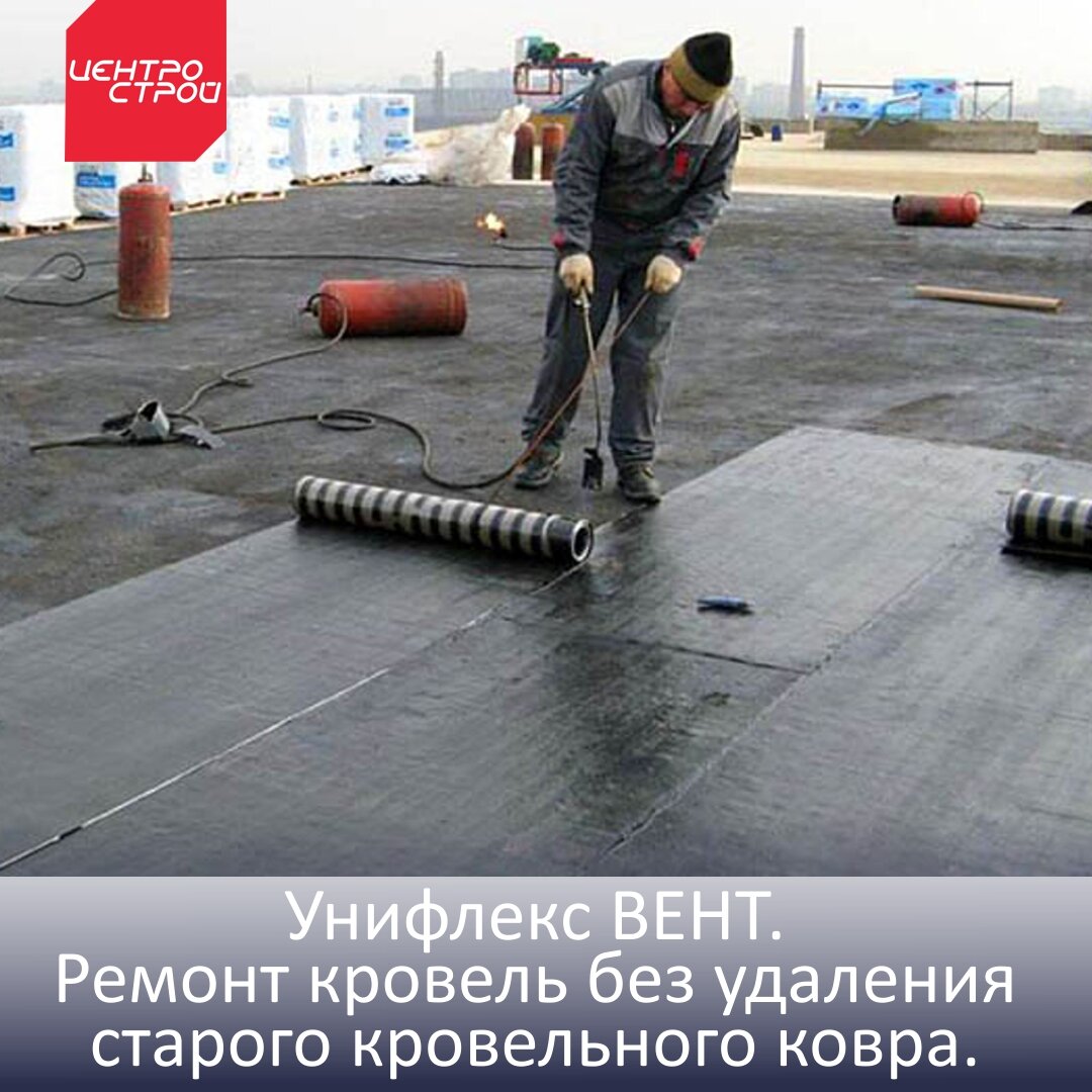 Ремонт кровель без удаления старого кровельного ковра. Унифлекс ВЕНТ может использоваться при осуществлении ремонта кровли без снятия старого покрытия. Материал обеспечивает эффективную защиту от проникновения влаги и тем самым препятствует образованию вздутий. Такой эффект достигается за счет устройства специальных каналов в кровельном ковре материала Унифлекс ВЕНТ ЭКВ, по которым отводятся водяные пары. На сегодняшний день Унифлекс ВЕНТ по сути является синонимом системы «дышащей крыши» и не имеет аналогов в России по своим эксплуатационным характеристикам. Унифлекс ВЕНТ представляет собой гидроизоляционное полотно, состоящее из прочной негниющей полиэфирной основы или стеклоткани, на которую наносится битумно-полимерное вяжущее. Со стороны вентилируемой поверхности вяжущее наносится полосками определенного размера, а промежутки между ними заполняются крупным песком. Благодаря такому рельефу при наплавлении остаются каналы, позволяющие кровле «дышать», гарантируя отсутствие воздушных