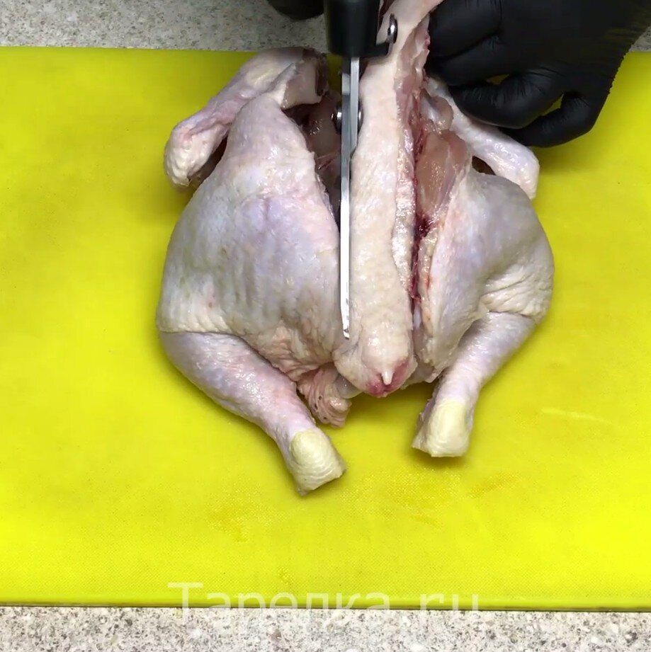 Когда мне лень готовить ужин, всегда выручает это блюдо. Как по мне, это самый простой рецепт, который можно придумать. А конечный результат выше всех похвал. Не знаю, кто придумал этот рецепт, но ему памятник нужно поставить. И нужно то всего 2 ингредиента - тушка курицы (примерно 2 кг) и пачка соли. Время, которое вы потратите на приготовление минимальное. Но как же вкусно. Курица получается невероятно вкусной, с сухой румяной корочкой и сочным мясом. Даже грудка, которая всегда считалась самой сухой у курицы, здесь получается такой сочной, что даже не верится, что это куриная грудка обычной запеченной курицы. Давайте уже начнем готовить. Итак, главное выбрать хорошую тушку курицы. Я беру курицу охлажденную, под прозрачной пленкой, чтоб ее можно было хорошо разглядеть. И обязательно курица должна быть без "душка". Пахнуть курица должна свежим мясом. Тушку курицы мою и обсушиваю бумажным полотенцем. Дальше есть 2 варианта. Первый - готовить ее целиком, не разрезая. А второй - аккуратн