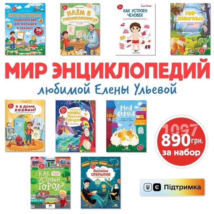 Мои книги выходят в разных странах. Но больше всего, после России, в украинском издательстве ПЭТ. Выходят на двух языках. И вот издательство запустило книжные наборы - это когда берете сразу много и получаете хорошую скидку В набор энциклопедий включили 9 книг, на самые разные и любимые детьми темы. А вы покупаете наборы?