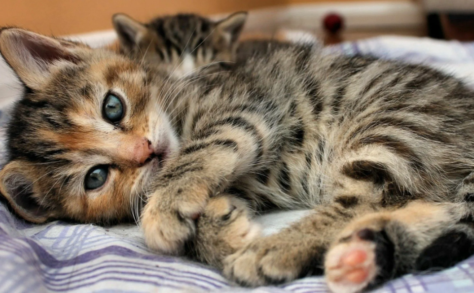 Котёнок осторожно приподнял мордашку и уставился на человека. Тут же раздался шорох и на краю кровати появилась тощая серая лапа. Через секунду к ней присоединилась вторая и два уха.