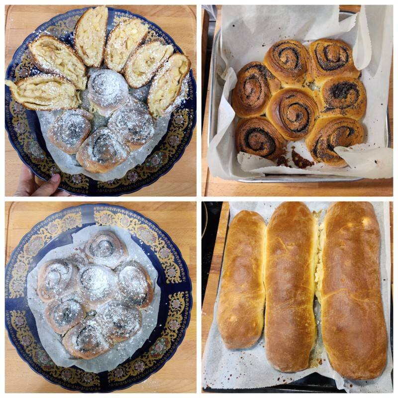 Сдобное тесто по маминому рецепту, очень вкусный проверенный рецепт, вкус из детства. Готовится все быстро . #маминрецепт #наскоруюруку Ингредиенты: муки высший сорт, свежих дрожжей, сахара, ванильного сахара, яиц, соли, Молоко , сливочного масла, Яблоки, Сахар, Сах.пудра , Мак Способ приготовления: Просеять муку, перетереть с размягченным сливочным маслом. Яйца взбить с сахаром и ванильным сахаром. В теплом молоке растворить дрожжи добавить 1 ст. л. сахара, подождать чтобы дрожжи активировались и появилась шапочка пышная. Соединить все ингредиенты и замесить тесто. Тесто получается очень мягким, муку добавлять по надобности чтобы не прилипало (но немного), в конце добавить оливковое масло, накрыть тесто и положить в теплое место, я поместила в духовку t50 на час ) Тесто подминать, если быстро подымается. В это время приготовить начинку. Мак залить кипятком половиной стакана, через 15 мин добавить полстакана сахара и растереть. Поделить тесто на 6 частей. Раскатываем каждый кусок теста