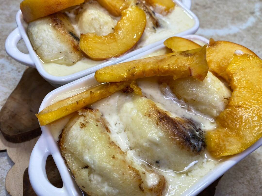 Ингредиенты: Сметана, Яйцо, Сахар, Сырники:, творог, желток яичный, сахар, крупа манная, масло растительное Способ приготовления: Творог, желток и сахар пробить блендером. Добавить манную крупу, размешать и убрать тесто в холодильник на 15 минут. Рабочую поверхность посыпать манкой. От теста отделить кусок, руками скатать в шар и немного обвалять в манной крупе. Шарик выложить на ровную поверхность и сформировать шайбочку. Удобно это делать ножом с широким лезвием и рукой: крутить сырник между лезвием ножа и рукой, расположенных параллельно. Затем лезвием ножа приплюснуть верх. Получится аккуратная форма сырника в виде шайбы. Сковороду разогреть с небольшим количеством растительного масла на среднем огне. Выложить сырники и обжарить с двух сторон до красивого румяного цвета на умеренно-среднем огне. Выложить в форму для запекания. Смешать все ингредиенты для сметанного крема и залить им сырники. Выпекать при 170 град. 10-15 минут.