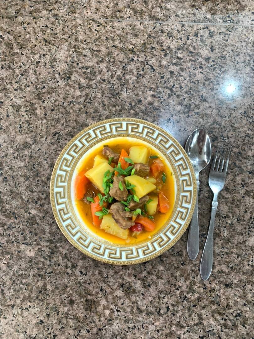Овощное рагу с мясом по этому рецепту получается нежным, полезным и очень вкусным 😋 Я готовлю это блюдо для своей семьи, им очень нравится. Потому что, мясо 🥩получается мягким, а овощи не разваренные🥕🥔 Ингредиенты: Подсолнечное масло для жарки, Говядина , Соль, черный перец , Морковь , Лук, Вода, Мука , Чеснок, Томатная паста , Картофель, Сладкий перец 🫑, Зелень по желанию Способ приготовления: На сильном огне, обжариваем говядину. Жарим пока испарится вся жидкость. Убираем говядину. Там же жарим лук, морковь и чеснок. Добавляем муку, хорошенько перемешиваем. Возвращаем говядину. Наливаем воду, затем добавляем томатную пасту и тушим 1,5 часа. Добавляем картошку, сладкий перец и зелень. Тушим ещё 30-40 минут. Наше овощное рагу с мясом готово!